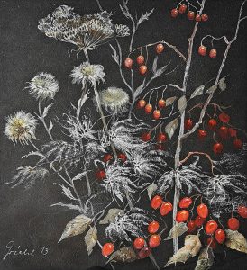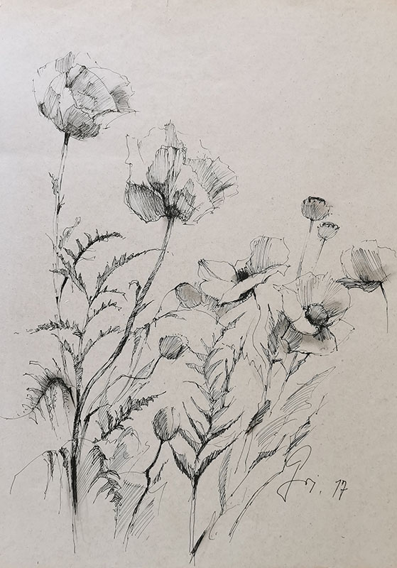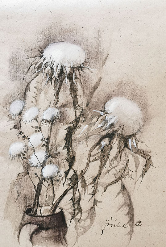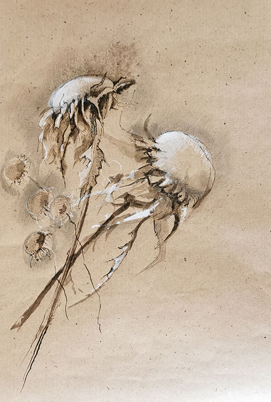 Angewandte Techniken: Aquarell, Pastell, Feder, Zeichenstift