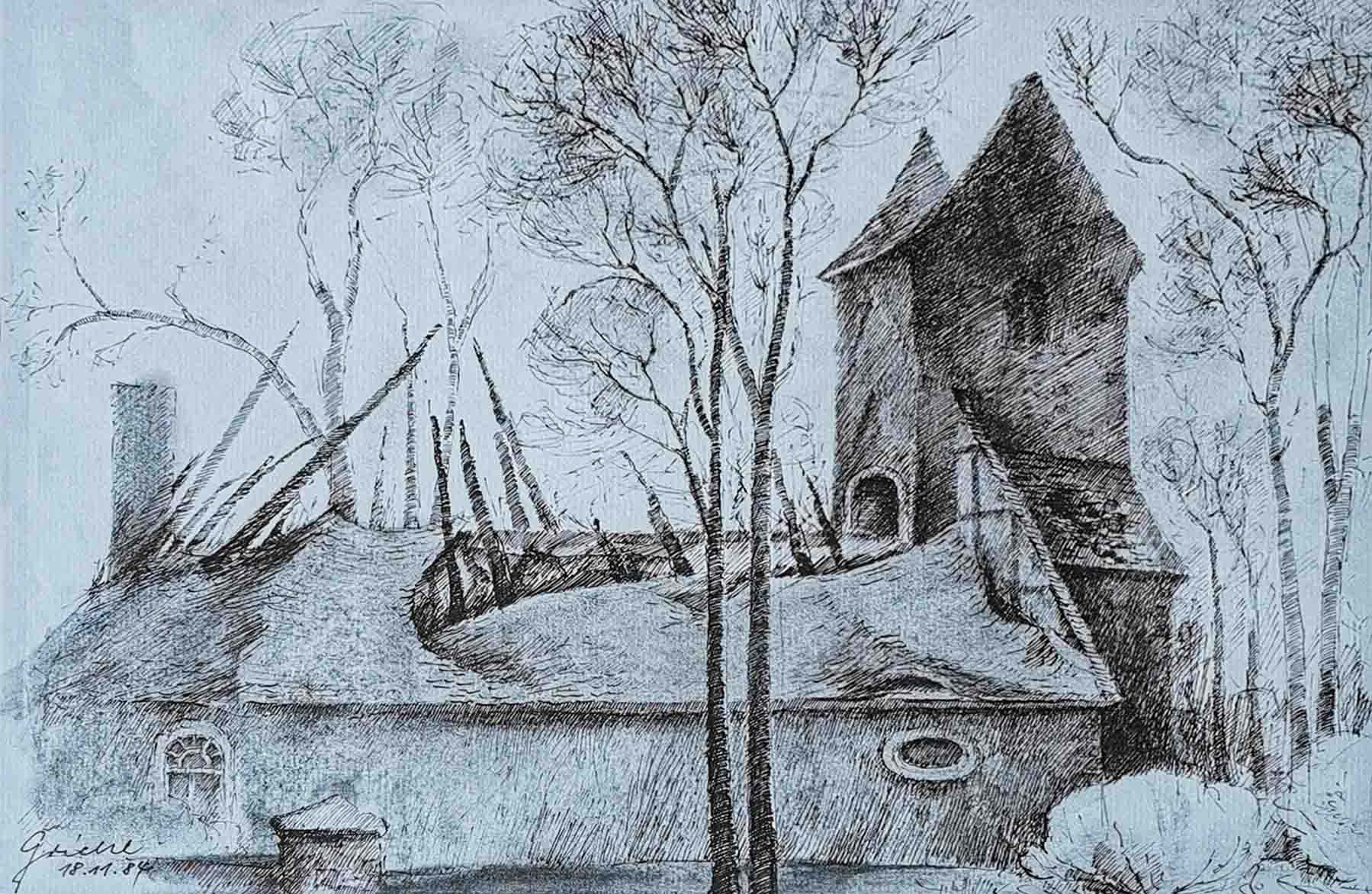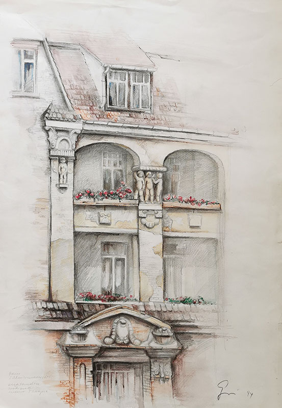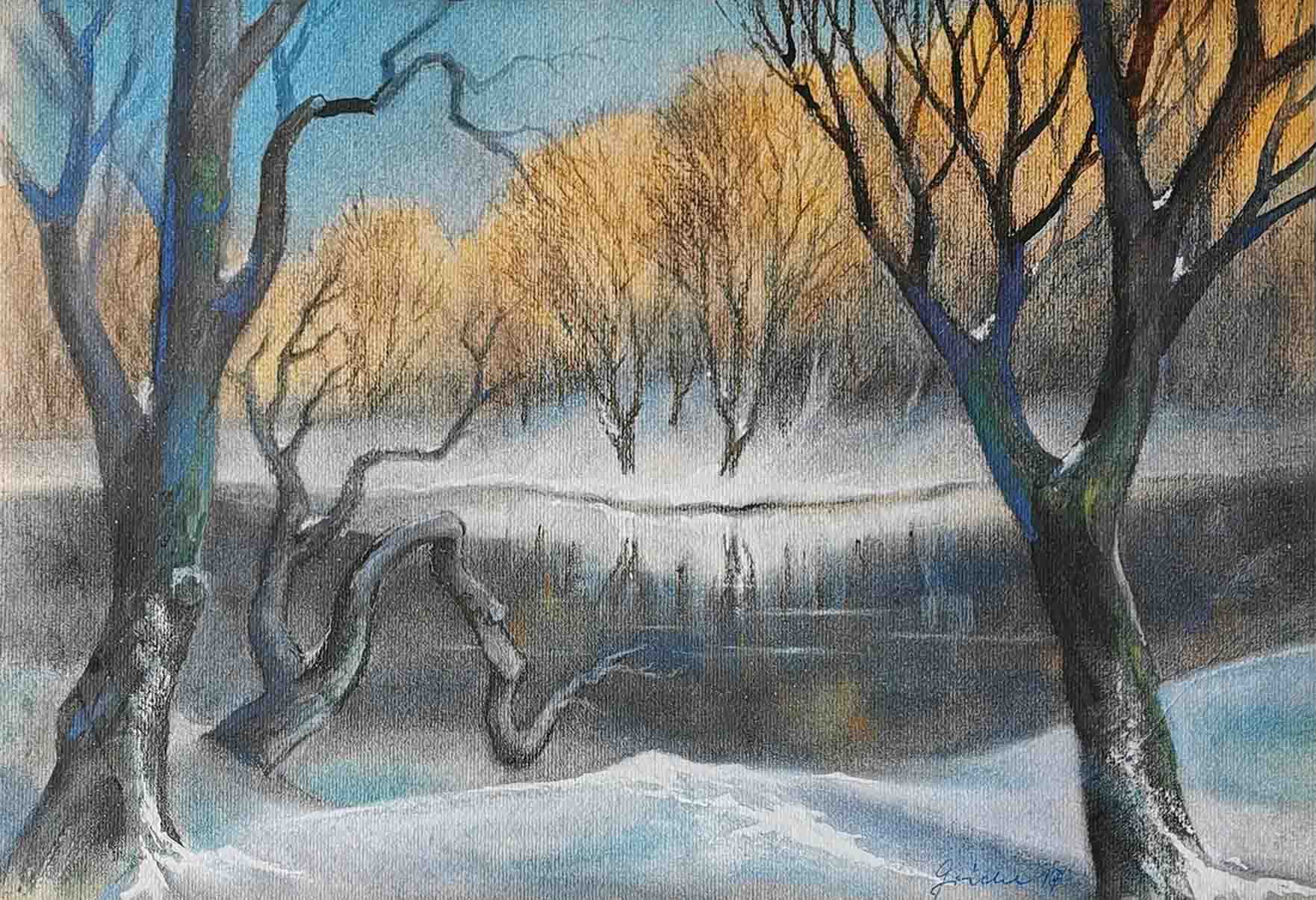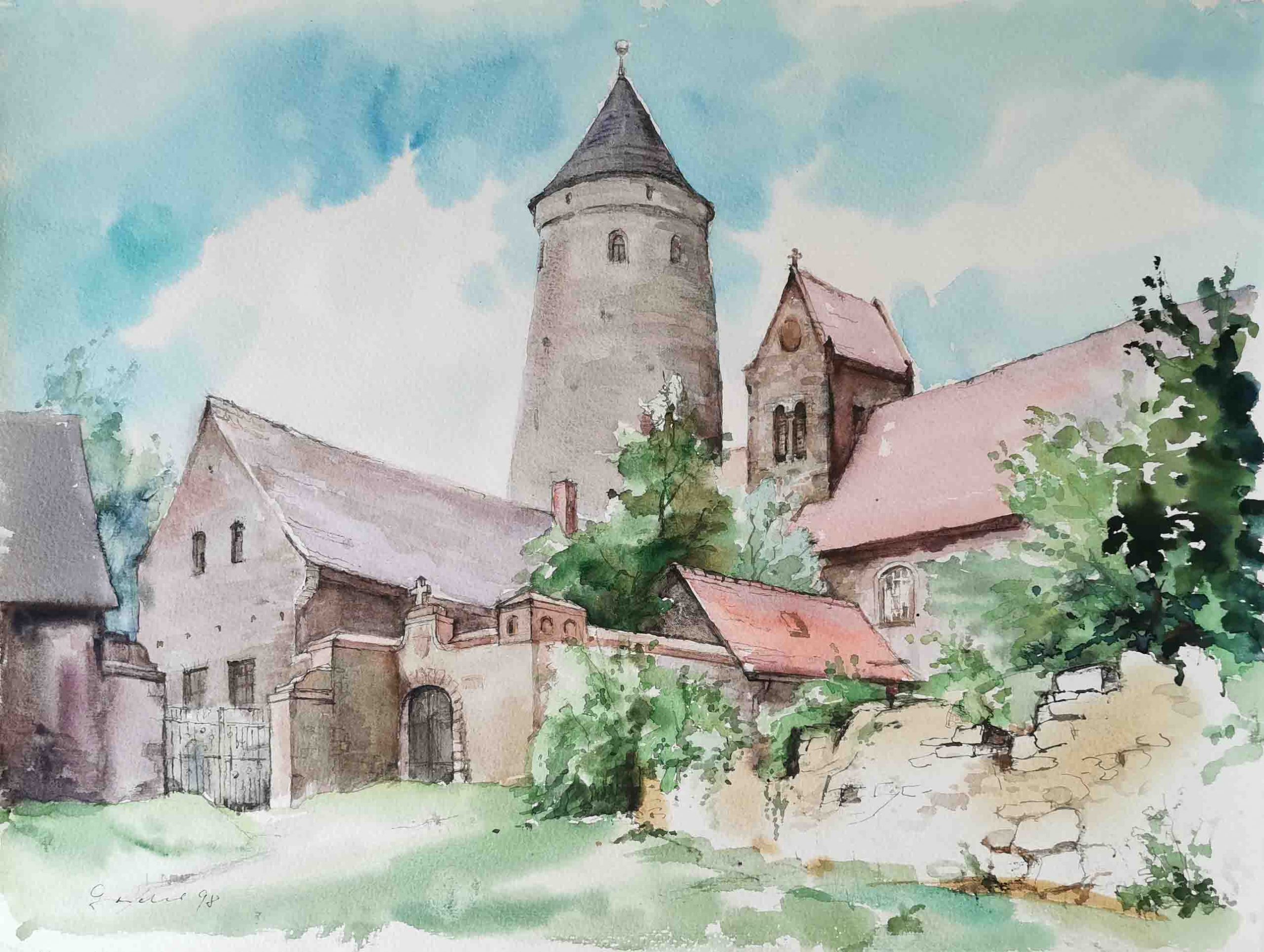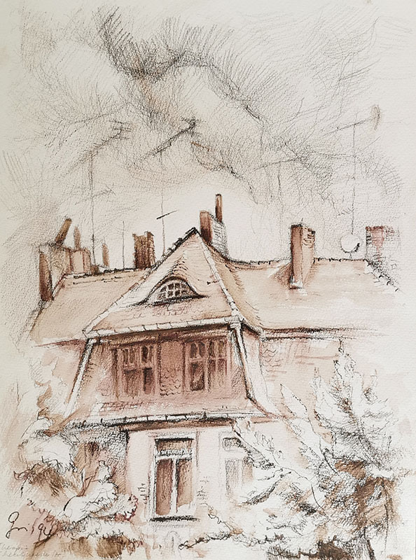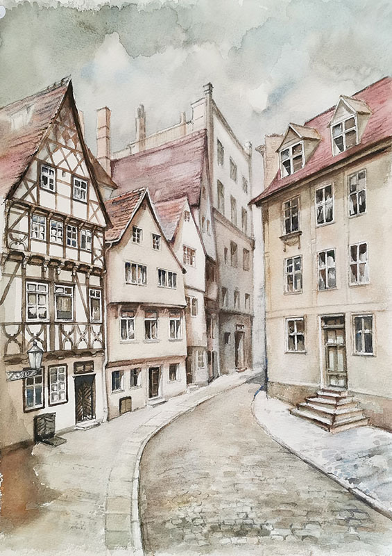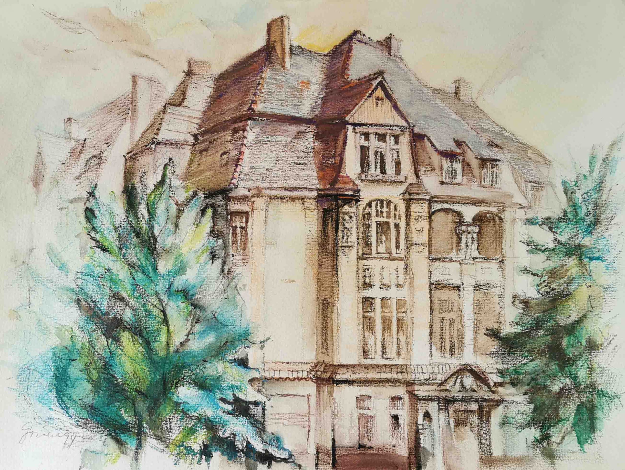 Angewandte Techniken: Aquarell, Pastellkreide, Ölkreide, Feder, Zeichenstift