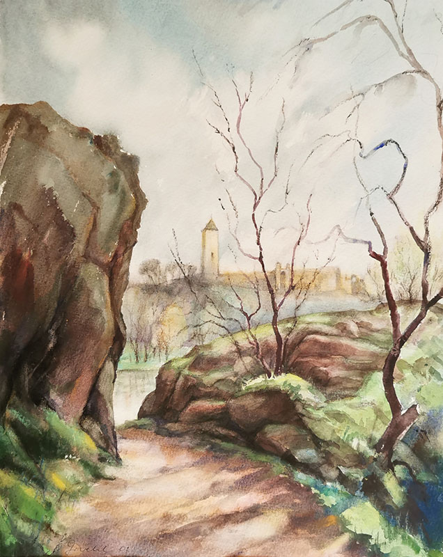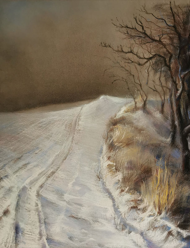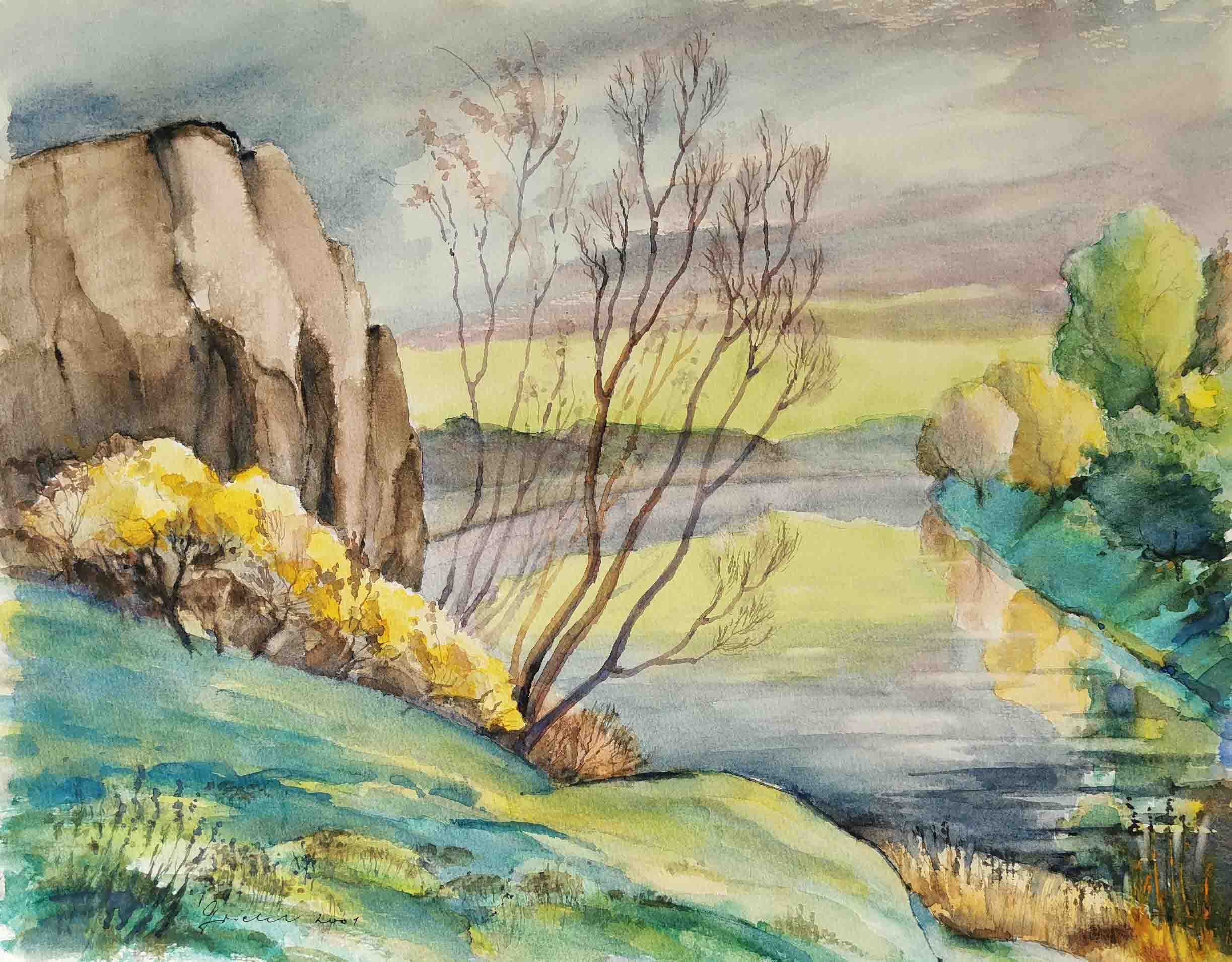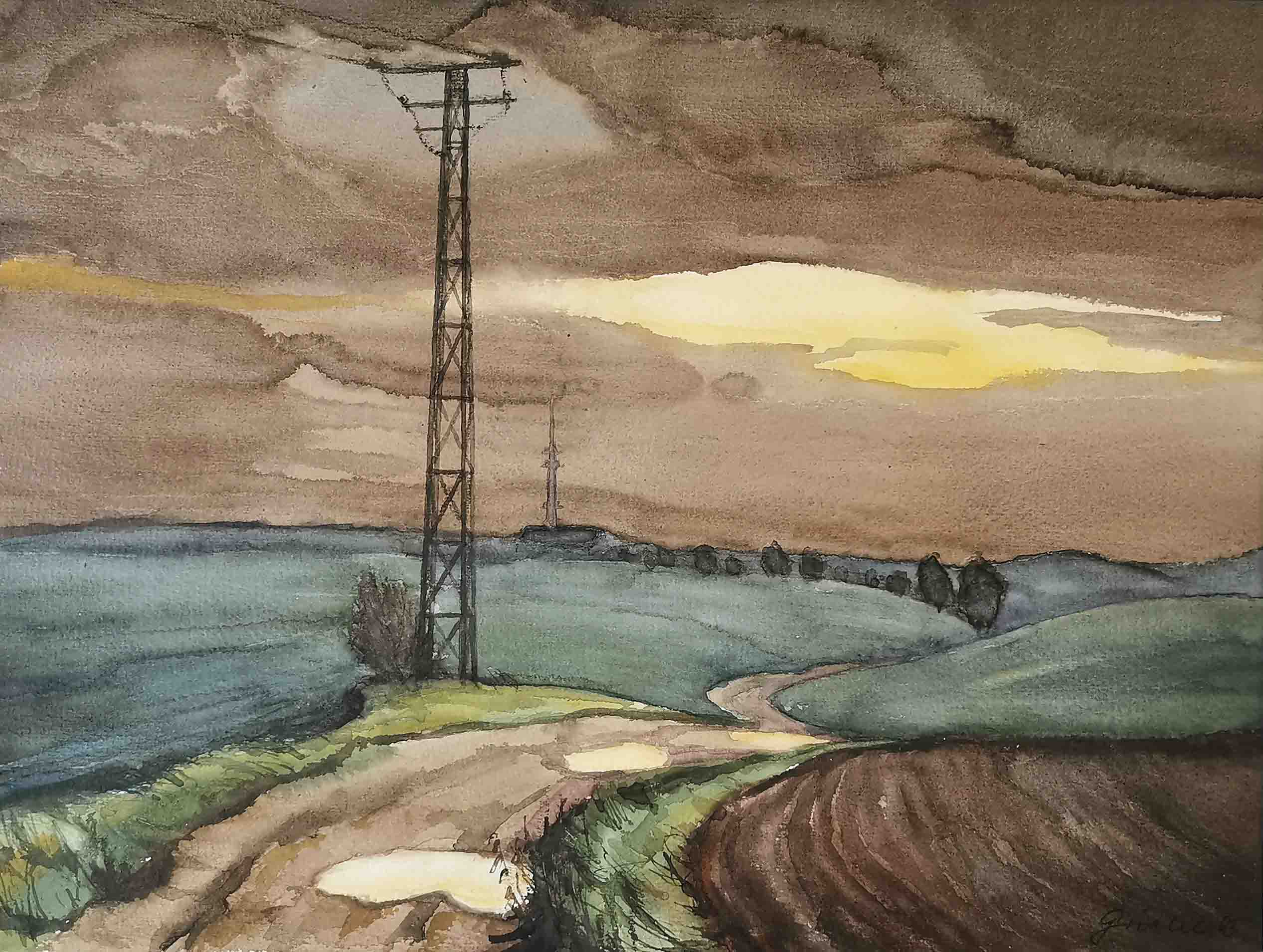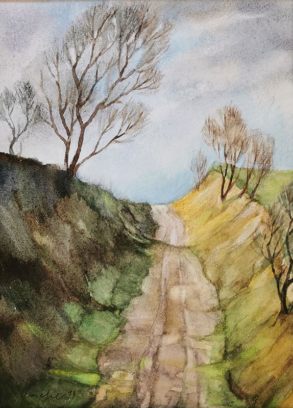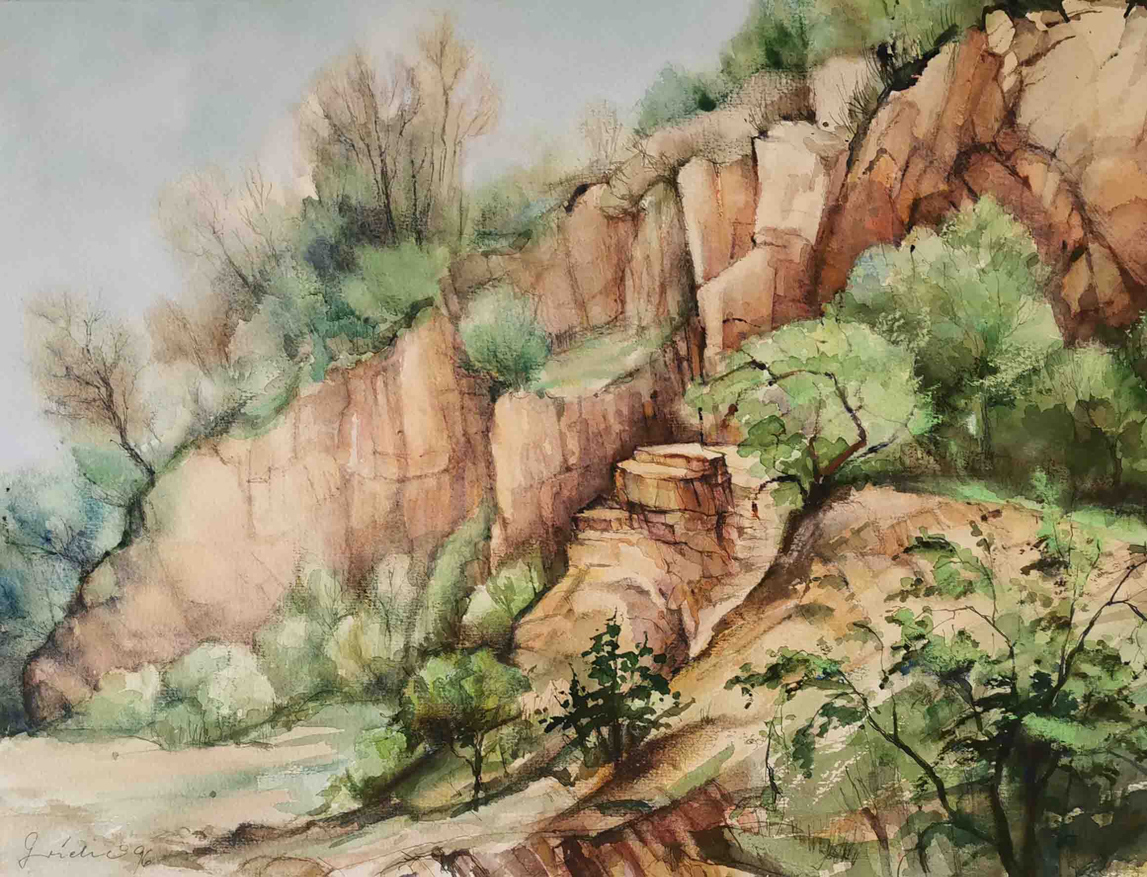 Angewandte Techniken: Aquarell, Pastellkreide, Ölkreide, Feder, Zeichenstift