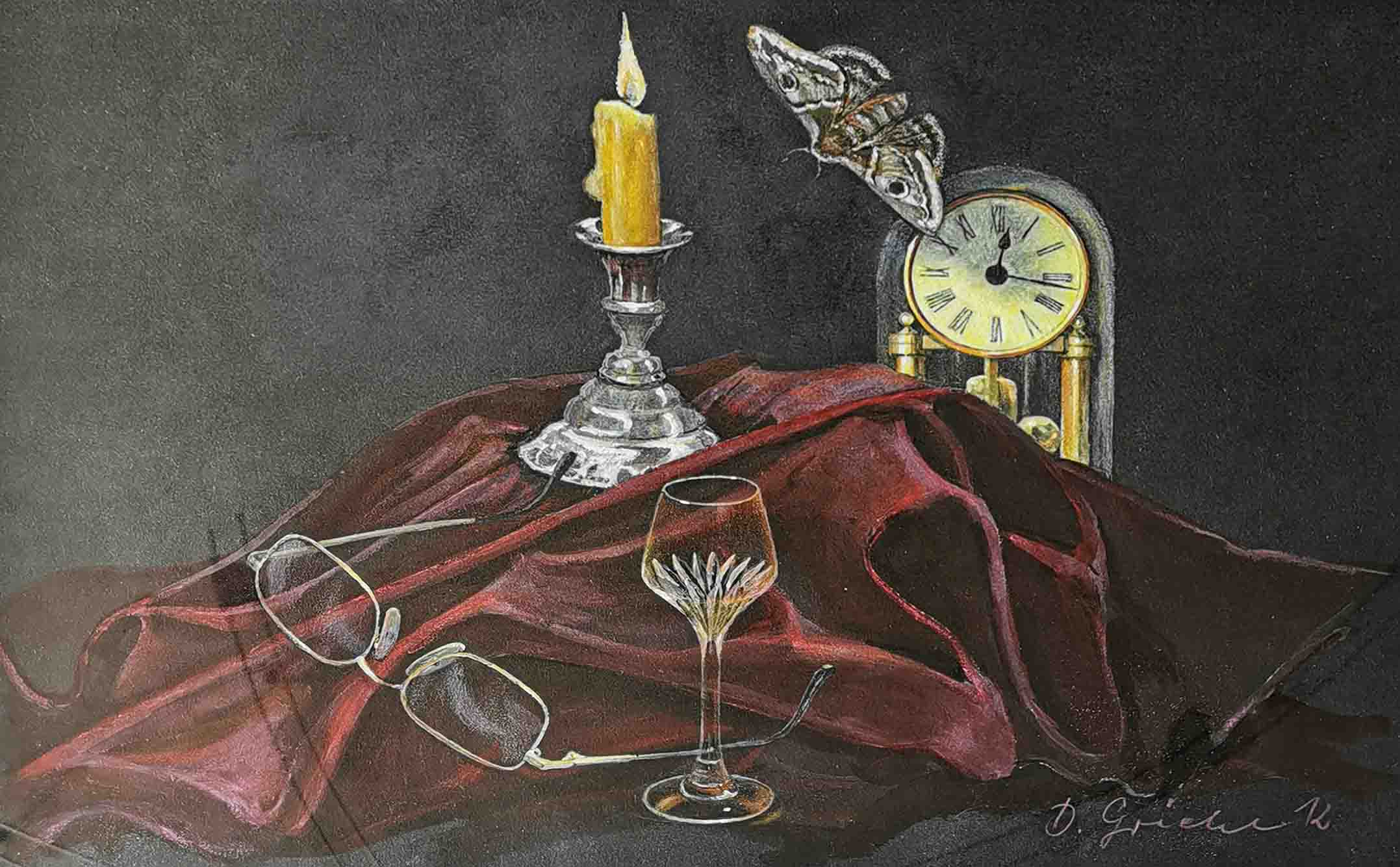 Angewandte Techniken: Aquarell, Pastell, Feder, Öl, Bleistift, Zeichenstift, Stempeltechnik, Collage 163164225226241380400416480482483487488489490492493507570587 – VERKAUFT588589629