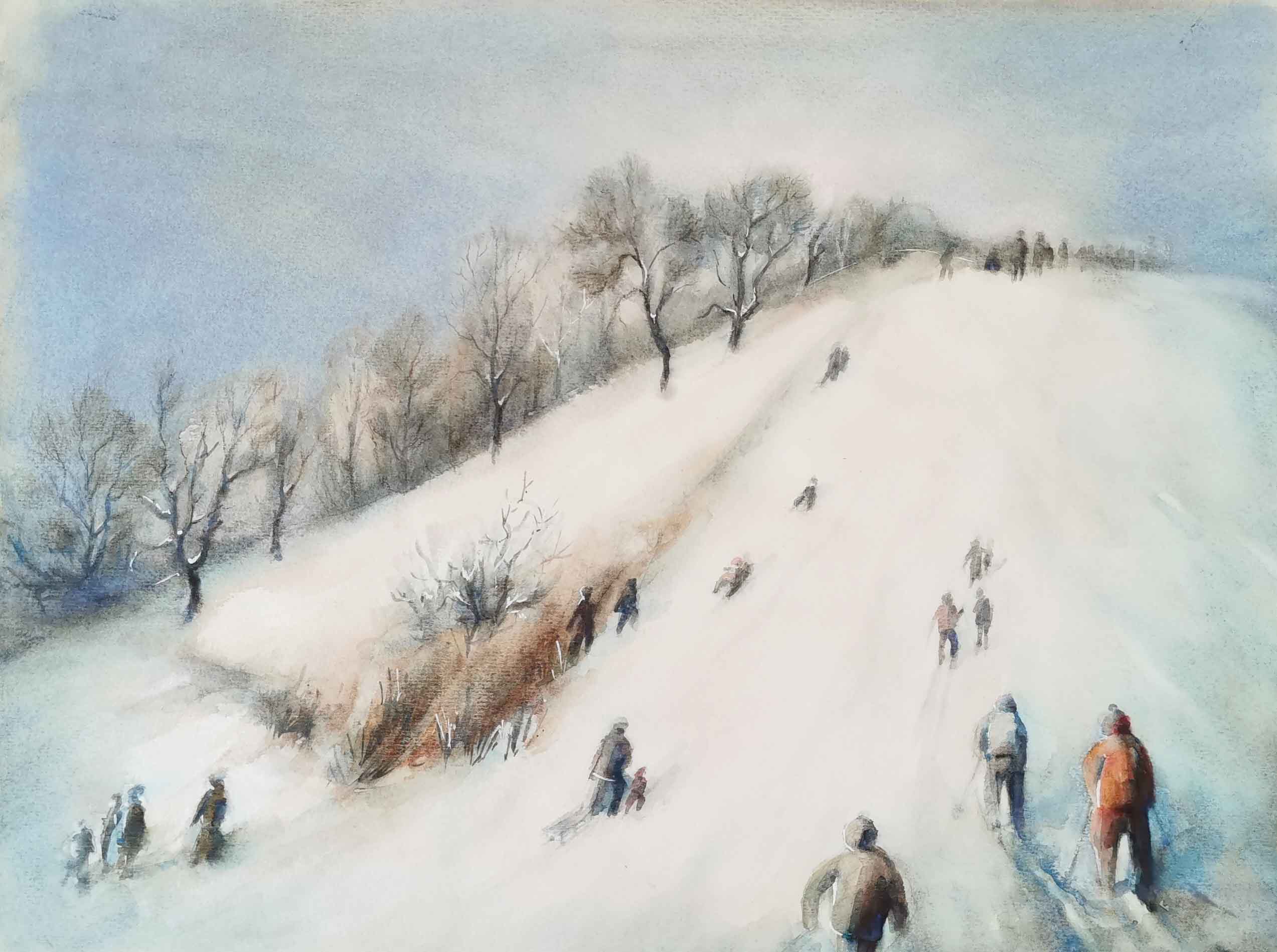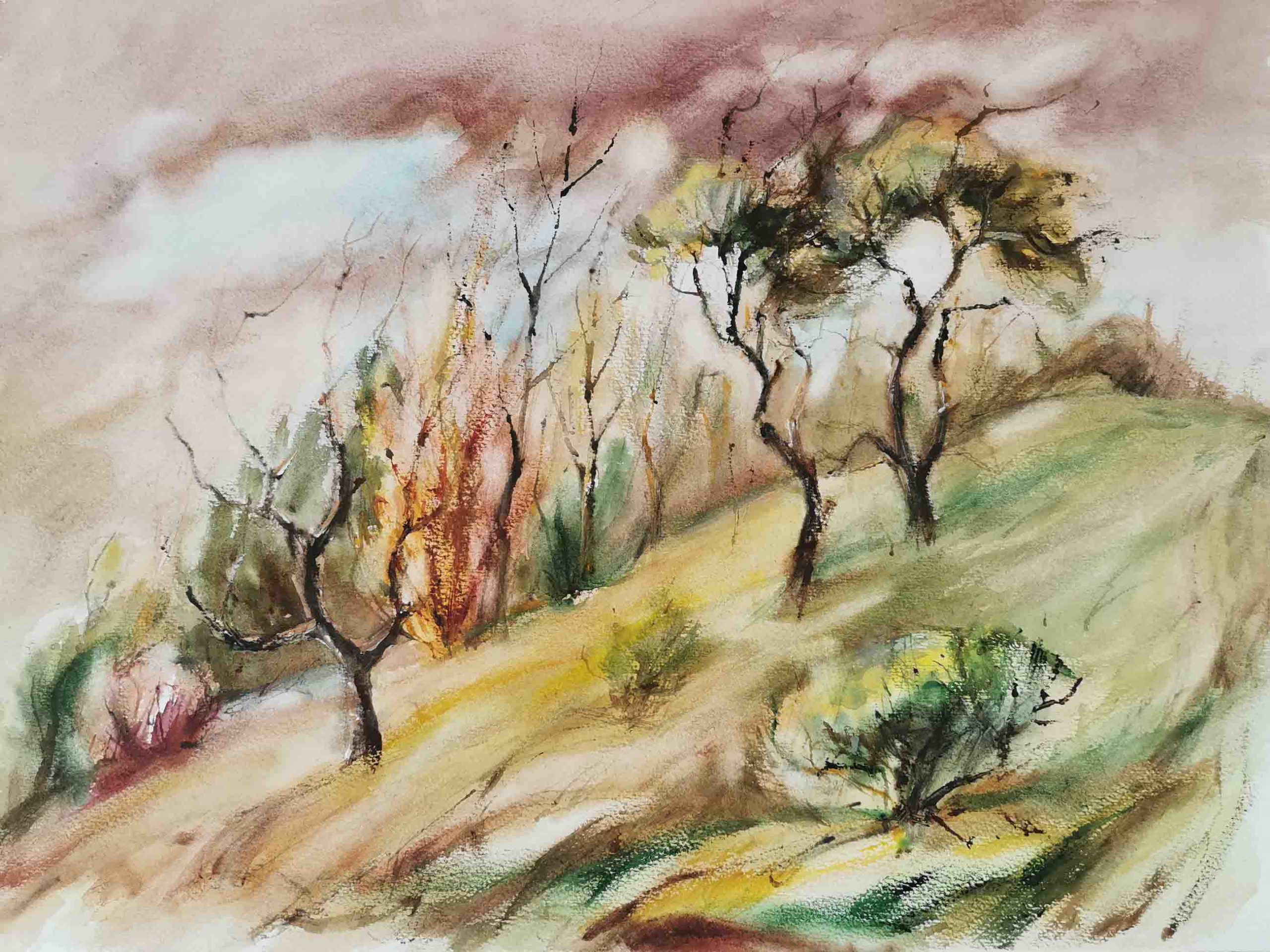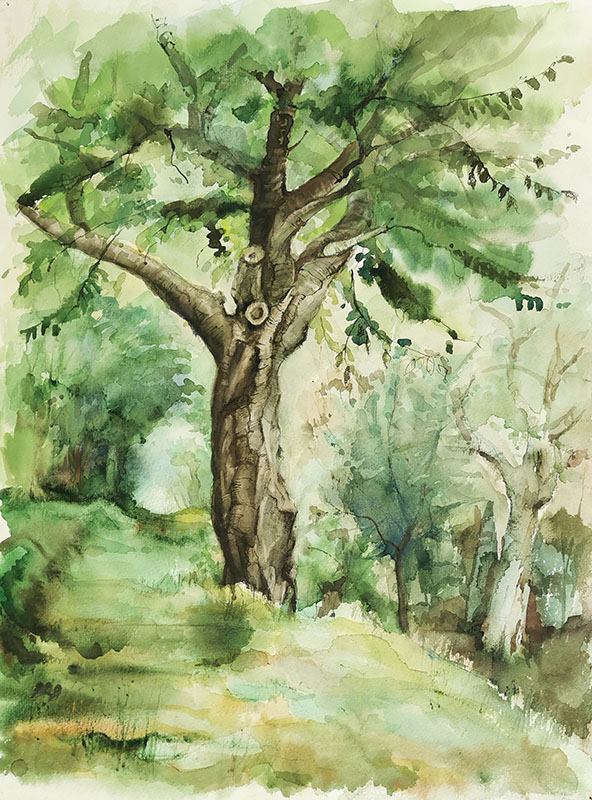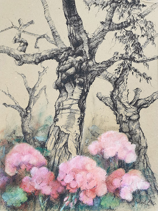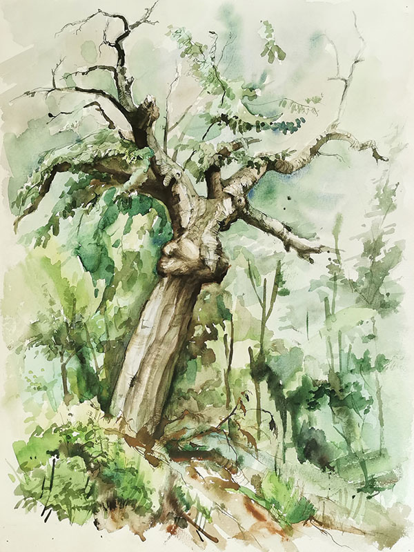 Angewandte Techniken: Aquarell, Pastell, Feder (coloriert), Zeichenstift, Bleistift